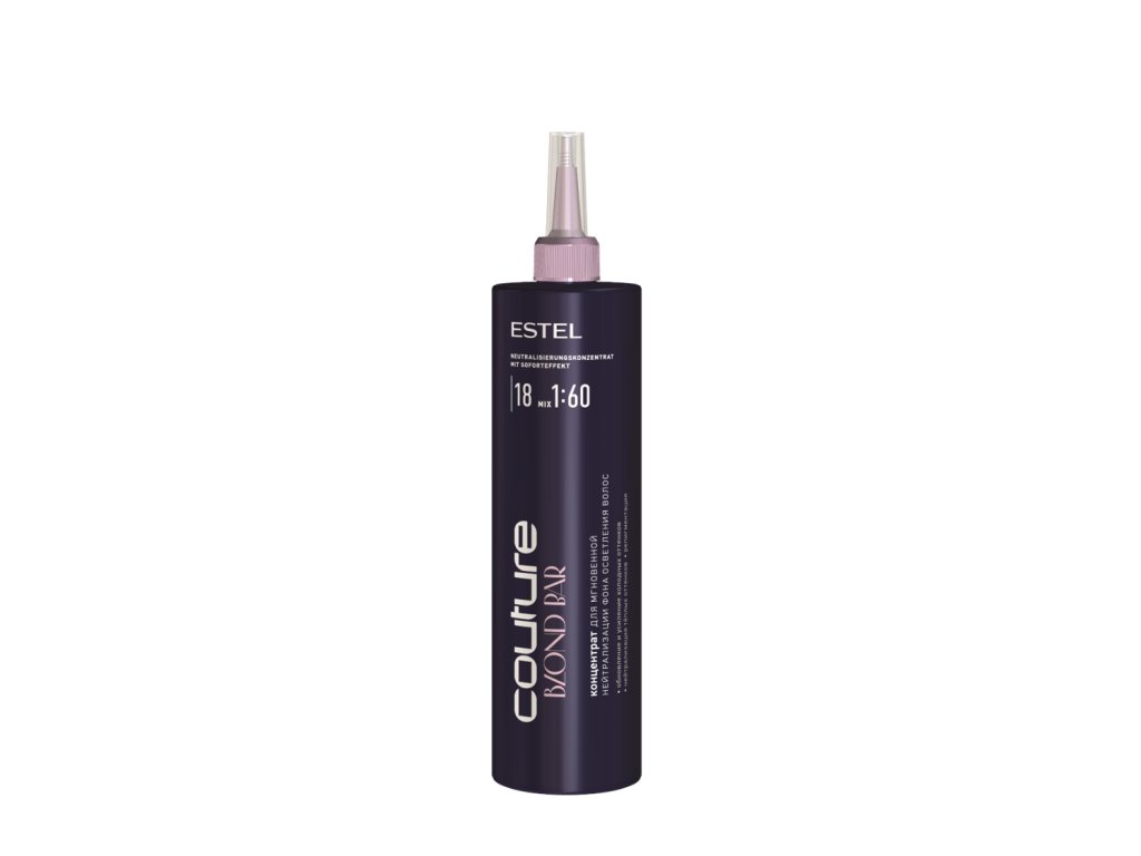 Vysoce pigmentovaný koncentrát ESTEL – okamžitá neutralizace nežádoucích tónů, repigmentace a zvýraznění studených odstínů. Umožňuje vrstvení barvy pro maximální hloubku a sytost. Vlasy zůstávají hebké, lesklé a perfektně připravené pro blond efekty.